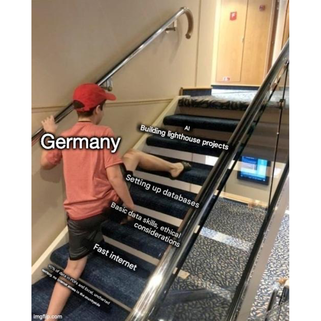 So like in Weizenbaum’s times, people ascribe huge potential benefits to AI systems, and fear falling behind if they do not adopt them. This might be especially so in Germany, my home country, as we’re still a bit behind with digitalization. This meme illustrates it: