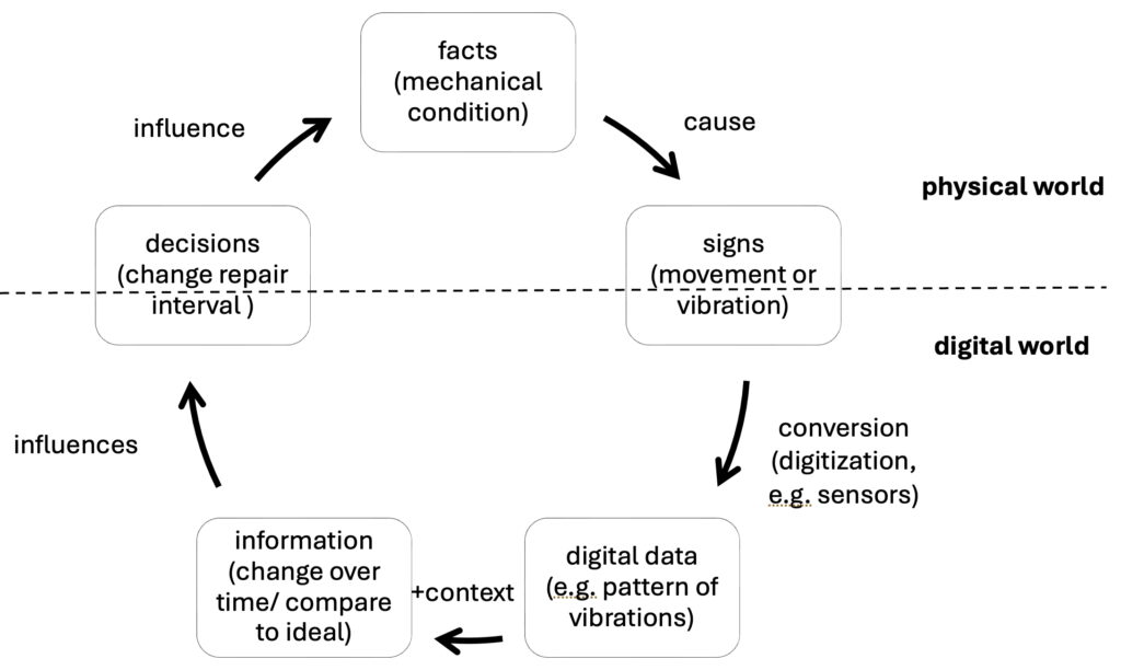 - These digital data can be enriched with appropriate context and used as information (e.g. ) to support decisions, e.g. about intervals between repairs.